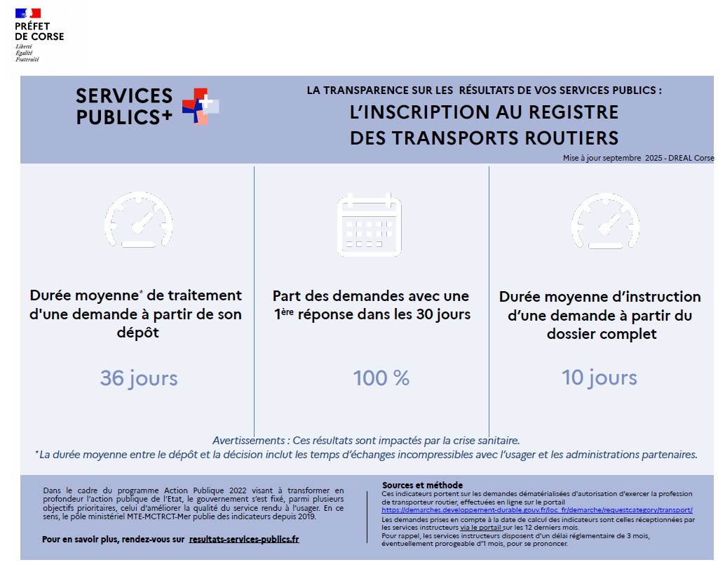 Vous trouverez ci-après les indicateurs de transparence relatifs à l’inscription au registre des entreprises de transport par route en Corse.
